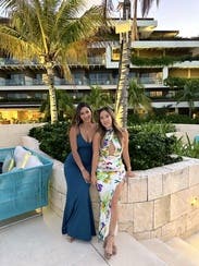 I was a little worried at first when I started buttoning the waist buttons, but once it was on it fit perfectly and was SO flattering. The satin was so lightweight and flowed beautifully. The slit was very high and sewn in a way that keeps it pretty open, so if you’re shy or planning on dancing hard, maybe try something else. Love the open back, the neckline, everything!