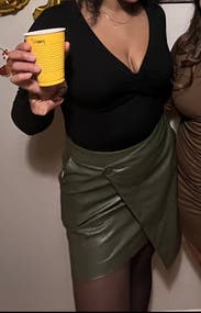 Buttery soft and super comfortable, easy to move in and doesn’t feel “pleatherly”. Fun style that levels up the traditional skirt.