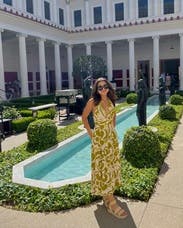 Really loved wearing this dress for the beach wedding I attended. The only thing about this dress I didn’t love was there’s a lot of extra fabric on the bust and you have to tie it fairly tight in the back for it all to lay flat, even then I ended up taping some down! Ordered a 4 and 6 and ended up wearing the 4 because it fit nicer. Overall cute and breathable for warm weather!