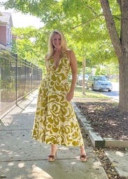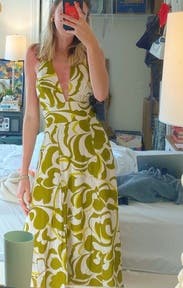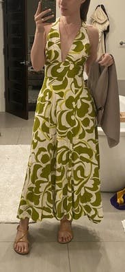 I wore this during a girl’s weekend in Miami Beach and it was exactly the right vibe. The cut is super flattering though it is low cut, which could be an issue for larger chested ladies. It’s a beautiful linen floral pattern, which called for steaming. Would rent again.