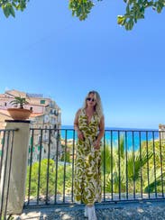 The fabric was a little more casual than I initially expected (soft / linen-like) but the fit and pattern made it nice enough to dress up for dinner on vacation. Would rent again!