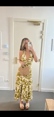 I love loved this dress, would absolutely have bought it if it was a little cheaper. The pattern, the tie in the back, just overall so good. Some of the reviews are right that it’s a slightly heavier fabric (so feels very high quality) and that the boob part fits a bit strange. It wasn’t too bad on me but I recommend having 1-2 pieces of fashion tape on hand to avoid gapping around the boob cup area.