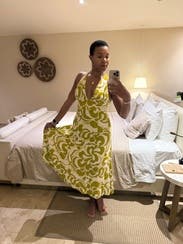 Love the back of this dress the most and of course the pockets! Need some help with tying in the back but overall loved this and recommend for a stylish daytime vacay look! Linen material does not have a ton of give so I sized up to feel more comfortable.
