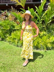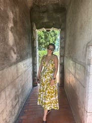 The *perfect* vineyard dress. I loved the fabric, pattern, pockets and neckline. As other reviewers mentioned, it's difficult to tie and not exactly tight on the sides of the chest - but worked for a single day outing. I went to the bathroom once to tighten it up but I'm rather small up top, 32B. Photo: Perry Vaile