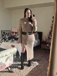 Good winter dress. The sweater I had looked like it had been washed a few too many times, but it was warm and had a fun shape.