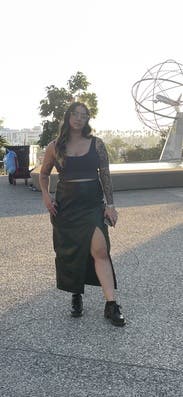 I liked the high slit, added sexiness to the long skirt. The cargo detail was a unique detail as well.
