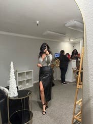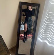 Perfect for a birthday dinner in winter! Fairly high slit like reviews mentioned when sitting might recommend tights underneath