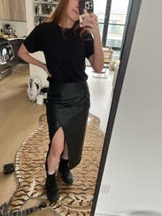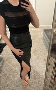 This material was so buttery and soft - the slit was great for a date night without being too revealing. Super stretchy too I could have sized down for a tighter fit - very high waisted as well. Great skirt!