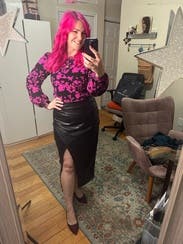 I love the way the skirt fit and looked. The only thing that I've learned about the leather is it wrinkles very easily.