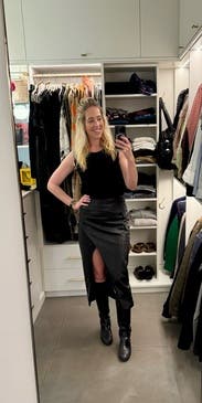 Wore this gorgeous skirt to my bday dinner. Hubby loved it!! It’s buttery soft and very comfy to wear. I’m in between sizes 6-8 and rented the 8 (6 wasn’t available). 8 fit great but a little lower on my body so next time I’ll rent a 6 so it fits a little higher and tighter. Looooove this skirt!