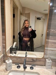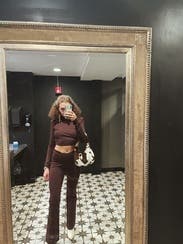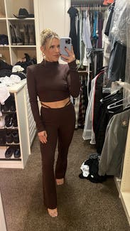 This was so cute! I got the whole set and it looked really nice on. The top has a button for the collar around the neck and it was SO hard to get on and off. It was SO tight. I was super uncomfortable by the end of the night because of it. I might try and rent again with a size up. The sides of the top also flared out if that makes sense. It was still cute but nottt comfortable
