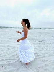 Snug zip but really flattering! Perfect for an all white beach party/wedding.