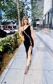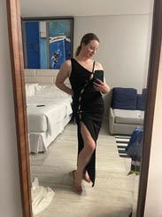 Wore this for my cousin’s bachelorette party in the Hamptons. I wasn’t sure if the cutouts would look too revealing/trashy but I felt completely comfortable and loved how it looked on me. I was a little nervous about the fit, because I had ordered another dress from the same brand in the same size that ended up being too small but luckily this one fit perfectly. Important to keep in more the dress has a side zipper and there also isn’t too much stretch in the fabric. Also couldn’t wear underwear with this dress because you could see it through the cutouts. Wish I had another event to wear this too. Would definitely rent it again in the future.
