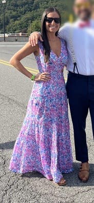 For us smaller busted ladies - I wanted to wear the larger size of this dress so it wouldn’t be so tight on my rib cage, but the straps were too loose on the top. I ended up fitting myself into the 8, but it wasn’t comfortable and was super difficult to zip the dress up. Regardless, it worked and I received a lot of compliments on the dress! It was perfect for a summer wedding and I love that it is flowey and has pockets!