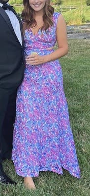 This dress was stunning and so flattering. Perfect for a summer wedding or event! The waist was a big tight but I could have made it work. The shoulders / chest were huge! I am a 32DD and still had the straps falling off.