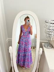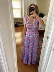 This dress was perfect for a summer wedding! Loved the colors and the material is light weight for those hot summer days. Can be dressed up! Was a little tight in the top, but I made it work.
