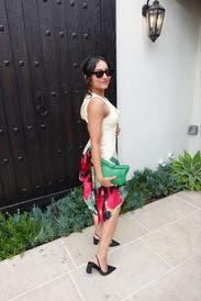 The colors on this dress are extremely vibrant in the best way. The silky material gives it a shine and the quality is great. Definitely a unique dress. I personally didn’t love how it draped on me— it just wasn’t the most flattering dress in the world but I made it work.