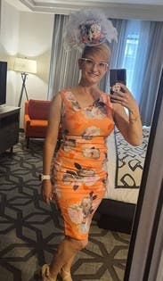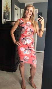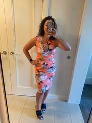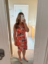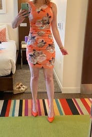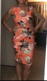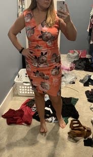 This dress was perfect for a Kentucky Derby Party! It was super form fitting, so I went with the 6. It definitely showed all my curves, but still managed to be appropriate for most occasions due to the length and cut. Floral pattern was prettier in person! Like others have mentioned, the linen material wrinkled, but it wasn't a big issues for me.