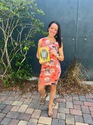 Love this dress! The fabric is like linen, which I didn’t expect. Very summery, fits great.