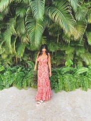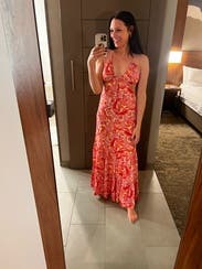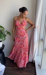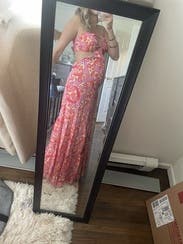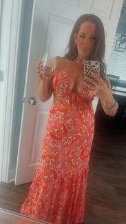 This maxi was amazing and received so many compliments. The colors are so bright and fun for a summer dress and the straps are adjustable in the back which makes it easy to fit just right. Almost ended up buying.