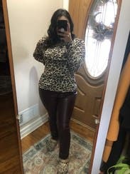 This top isn't your average leopard print that can look tacky. Due to its structure and material this top looks luxe & is really flattering. Great under a jacket or on its own! Might need to buy this one.