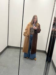 I think this is a great work from home top! It's got a good amount of stretch to it so if you're deciding between 2 sizes you could definitely go with the smaller size. However, I'm happy mine was a little on the looser side because it made it super comfy to wear all day. I just wore mine with leggings because 2020, but if I had somewhere to go I think would look great with jeans or black pants and a camel jacket!