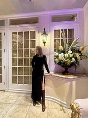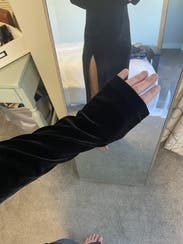This dress is fabulous and fit me like a glove! It was perfect for a winter fancy date night dinner. The slit is dramatic but still classy thanks to the simplicity of the rest of the dress. Got so many compliments and seriously considered buying. Will definitely rent again!