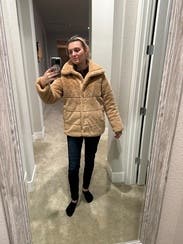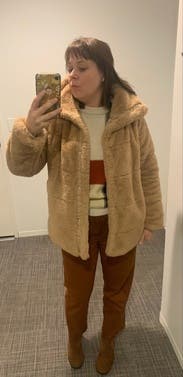 I loved this coat so much. It’s trendy, versatile and warm. Goes with everything and fits well. Has buttons and feels so soft!