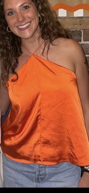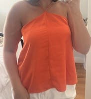 I loved this top! It was a bit thick to wear on a hot southern day in the direct sun, but I would definitely rent again. Beautiful orange color and I loved the neckline. Could definitely been worn more elevated, but I rented for a football game day