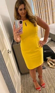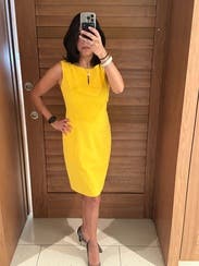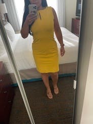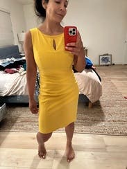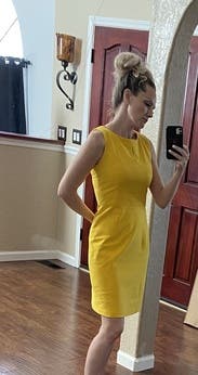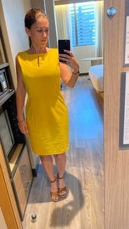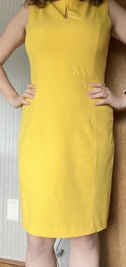 Bright yellow is a gorgeous pop of color and dress is cut well with thick fabric. Perfect for a spring / summer work day or event.