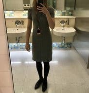 This is the most perfect work dress. I wore it with tights in the winter, and it looked great! Fitted enough to be very flattering while staying work appropriate. It's so easy to dress up or down too. The material feels high quality, and it was very comfortable. Also - my legs are long, so I always have problems with dresses, but this dress fell beautifully right above the knee. I had to buy it!
