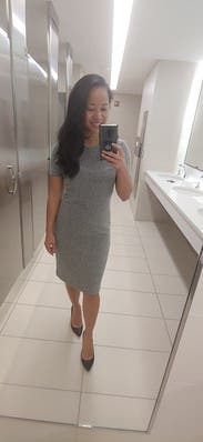 This dress was fitted but not too tight so I felt comfortable wearing it to the office. It was easy to throw on and I felt put together - good basic piece for work.