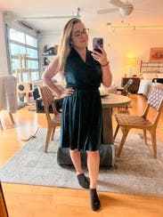 This feels like the kind of dress that would look good on everyone. Fabric is really stretchy and comfortable and the thick waistband was flattering on my hourglass.
