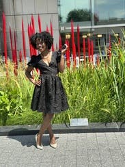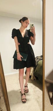 I wore this to a semi-formal. It gave a little bit of a Wednesday Addams vibe- in the best way. Girly with an edge. I was in between a 4 and a 6 but decided to size up. You definitely make a statement. Hack: Its possible you can wear a bra with it depending upon your chest size and shape- I had a VS bra from a while back similar to the lovecloud lightly lined plunge bra- that worked well and was comfortable.