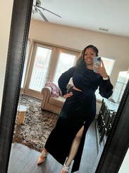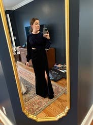 I was so comfortable in this dress. The cutout was just enough to give it that edgy look, and the slit made it fun, too. I’m in between a size 2 and 4 and was able to wear the size 2 perfectly. If I have another formal, winter event, I’ll be choosing this one again.
