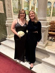 I got this dress in two sizes. Normally I’m about to 10, but I wore the 12 in this dress because I like the extra room. I think the tin would’ve probably looked a little better because it would have been more formfitting. But I was taking a chance on this velvet in May for a Chicago wedding; one never knows!! So I thought a little looser fit would be more comfortable and cool. It was beautiful and sophisticated, and I got tons of compliments.