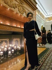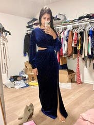 Gala ready look, velvet with a peep of skin
