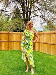 Wore this dress to a benefit fashion show in Florida springtime. The asymmetrical cut gave it the edge I was looking for, but the color and floral print made it fun for Florida. Many, many compliments!