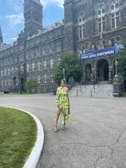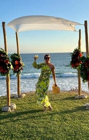 This dress fit perfect. The slit is just the right length which made dancing in it so fun and easy! The colors were SO bright and fun and I got compliments all night. Fantastic choice for Miami wedding!