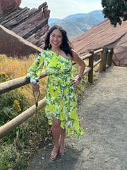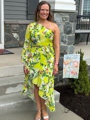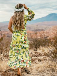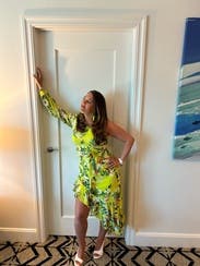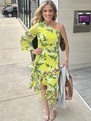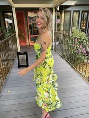 This dress fit great, was true to size and the attached belt make it easy to cinch in a bit more at the waist. Material is flowy and looked amazing in motion. I kept accessories minimal as the dress is the real standout. This was not my first choice dress as I was afraid of the chartreuse color, but quickly became the front runner as soon as I tried it on. Don't let the bright color scare you!