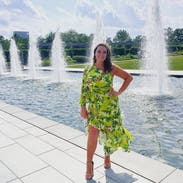 Given the majority of my wardrobe is black and grey everything, I stepped far outside my comfort zone when I opted for both color and pattern and it was worth the gamble. The dress is super flattering and the belt cinches in the right places. I wore the 2R and it was perfect! I could have worn a strapless bra but chose to wear adhesive lift tape instead so I didn't have to worry about my bra creeping out throughout the night. Definitely recommend wearing this with a neutral-colored, strappy, and dainty sandal. Pumps and heels with too much fabric overpower the dress and look unbalanced.