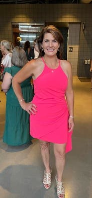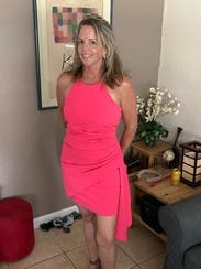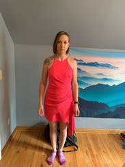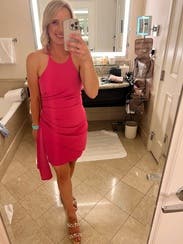 This is a super fun hot pink dress that is really easy to wear and great for tall ladies!