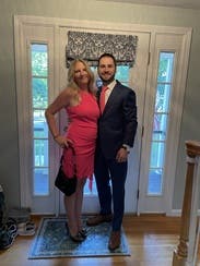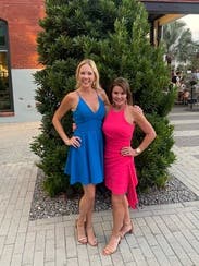 Bright colored dress with strappy shoulders. Very soft and comfortable. Recommend using dressing tape as my bra kept popping out the side all night. Loved it and even considered buying.