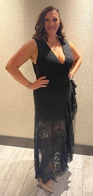 I chose to go more modest and wear a lace trimmed tank top under the dress but the deep V neckline and mesh side panels would've been fine for a different formal event. So glad I ordered this dress!