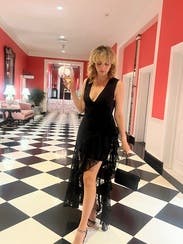 The theme was "black tie western" for our holiday party and this was perfect with boots. The slit was the right height and it hugged perfectly