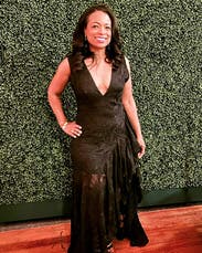 Wore this to a black tie gala and loved it. The top does not accommodate a bra and was a little loose (I just used tape), but it was really comfortable. I wore a 2.5" heel and still had to pick up the back on the escalator, but I was able to walk around in it easily. I was pleasantly surprised by the fit and the length as I usually struggle with "regular" sized dresses.