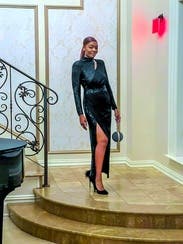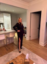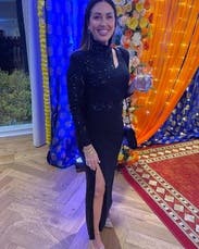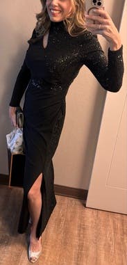 This dress is very flattering! I thought it might be too plain but the slit, cut out and sequins make the dress pop. I received lots of compliments. Highly recommend.