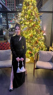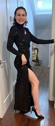 Wore to Vienna Opera house. Perfect fit with just enough sexy. Side slit was nice for movement but still discreet enough to sit comfortably. Lightweight and packable in a packing cube so it was great for travel. Long sleeves meant I didnt have to mess with a wrap or coat. Will definitely rent again! Highly recommend.