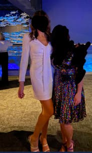 I paired with cowboy boots for a little juxtaposition to the white sequins. Tons of compliments on the dress all night! It has a low low neckline so you probably want tape to keep in place. Great dress!!!
