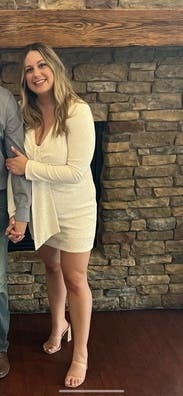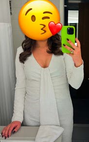 Almost wore this as an outfit change for my wedding, but didn’t love how tight it was around my bottom. Go up a size for length, too, if you are tall!